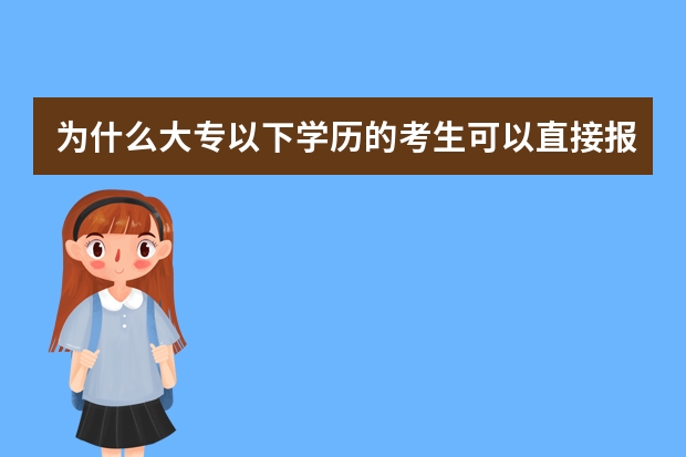 为什么大专以下学历的考生可以直接报考自考本科 很多学生不明白为什么大专以下学历的考生,甚至高中以下学历的考生都可以直接报考自考本科。那么,为什么大专以下学历,也能报名自考本科?接下来小编就为大家简单分析一下。首先,我们先来了解自考本科报名条件:a、不受性别、年龄、民族、种族、已受教育程度的限制。(不限学历,户口,可在异地报考毕业。)b、不需要通过入学考试。直接通过本省教育考试院官网进